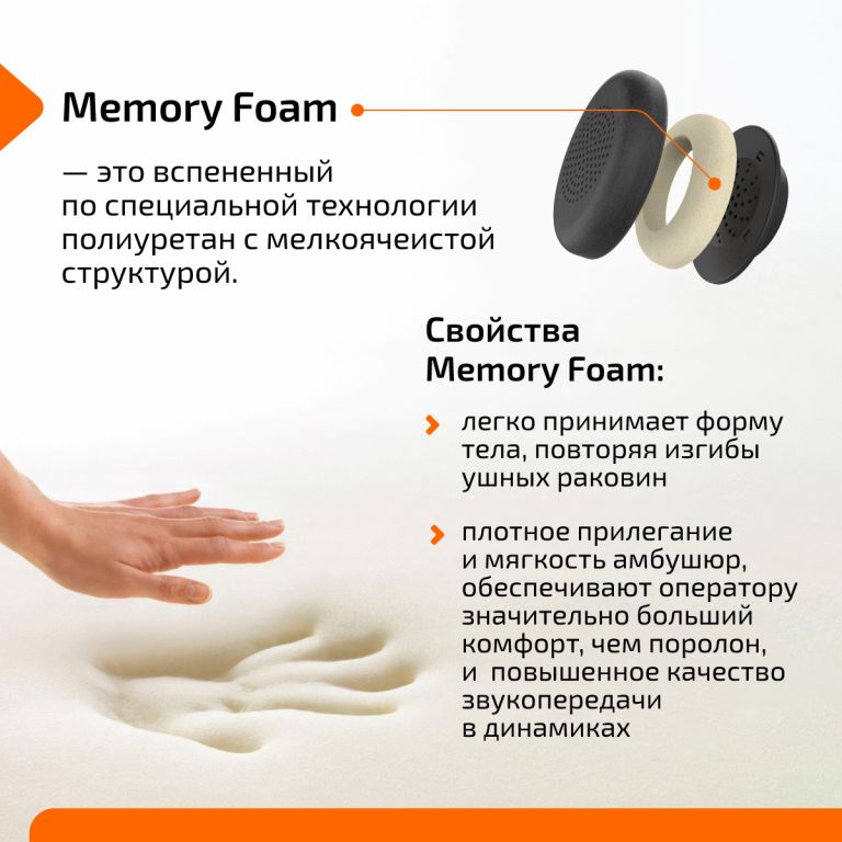 Сменная амбушюра для серии 610MK3. Амбушюра выполнена из качественной экокожи с наполнителем из пеноматериала с эффектом памяти Memory Foam. Свойства Memory Foam дают оператору высокий уровень комфорта при длительном непрерывном использовании гарнитуры. Подробнее с сего свойствами можно с ним ознакомиться на изображениях ниже