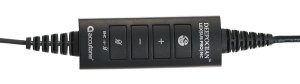 Основные опции : гибкое регулируемое оголовье, большие амбушюры из поролона, мультимедийные динамики 28 мм для голосовой связи и музыки, гибкий поворотный держатель микрофона, шумоподавление микрофона, регулятор громкости и кнопка временного отключения микрофона на шнуре.